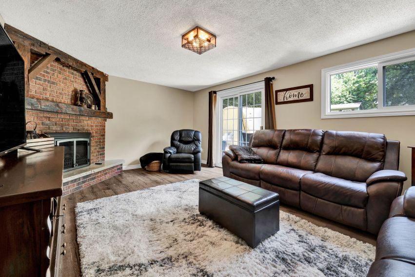 The lower level features a spacious family room with a cozy fireplace and large patio doors that let in plenty of natural light and open directly to the backyard.