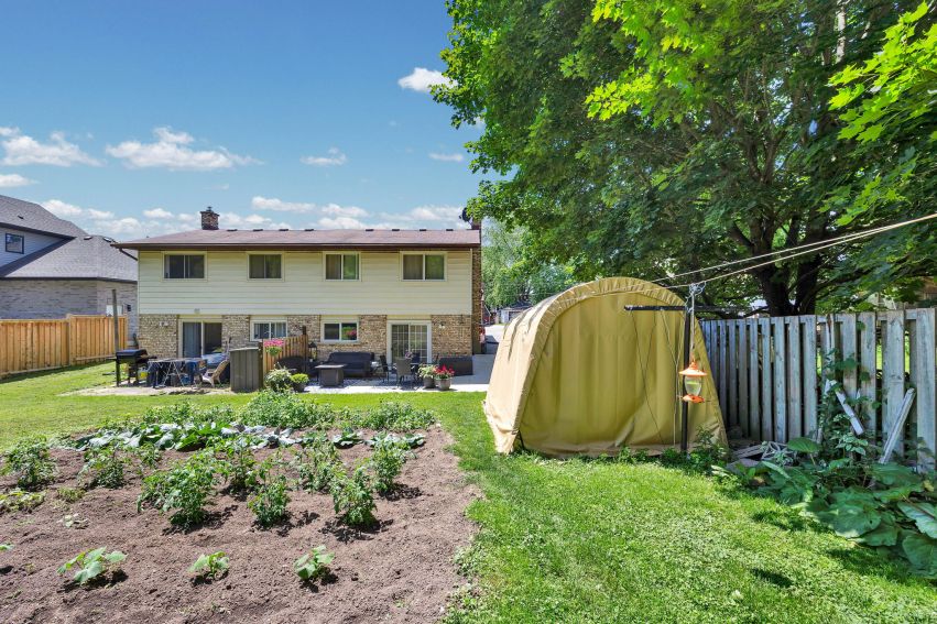 The backyard is one of the highlight features of this home. With a patio, garden shed, coverall shelter, and a garden plot, there’s plenty of room to enjoy the outdoors.